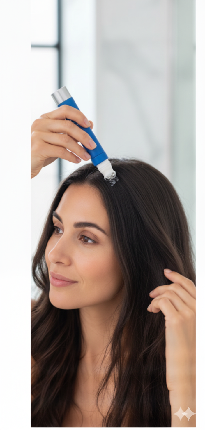Use the dropper to apply a few drops directly onto your scalp β focusing on thinning or problem areas.